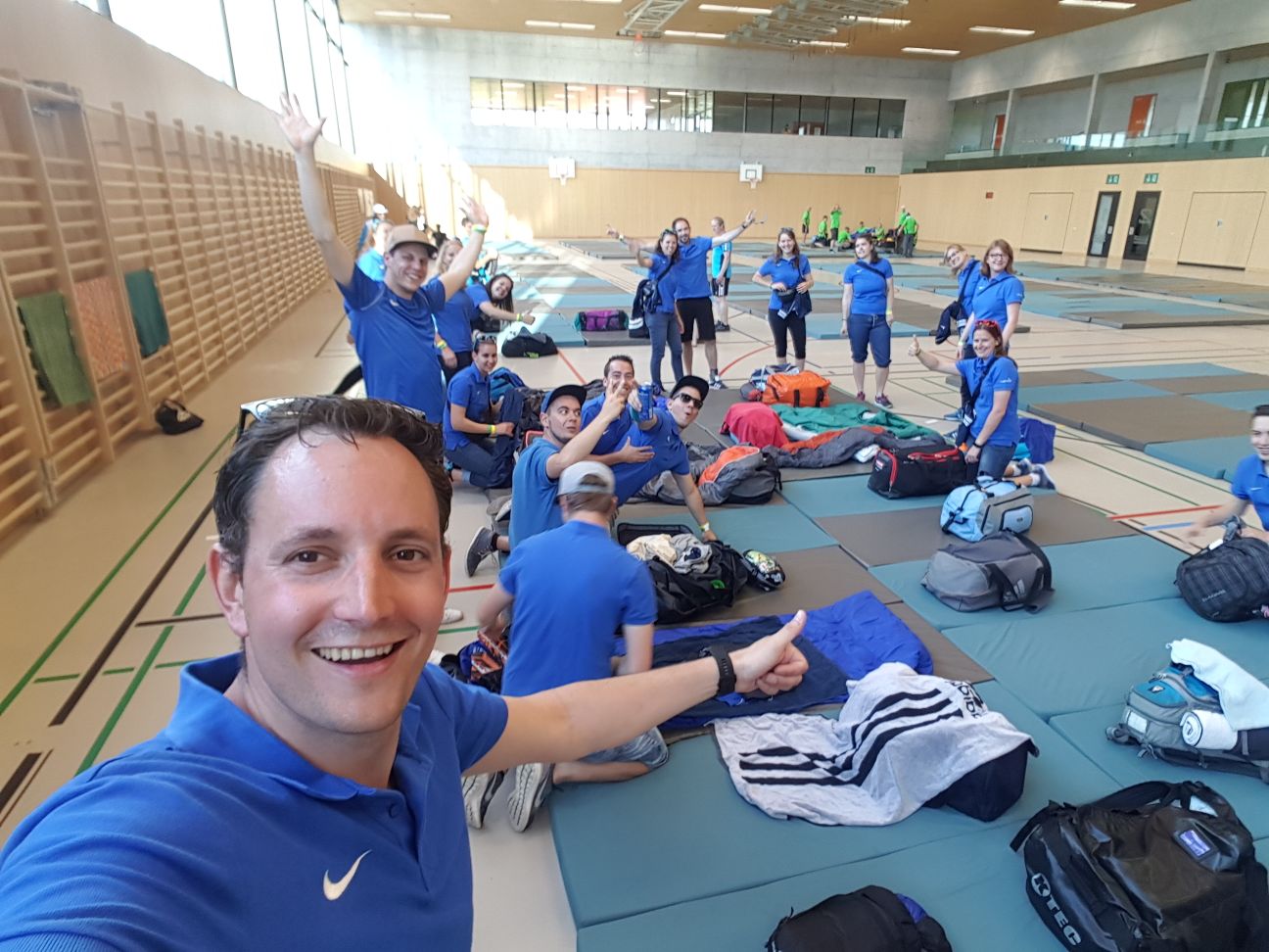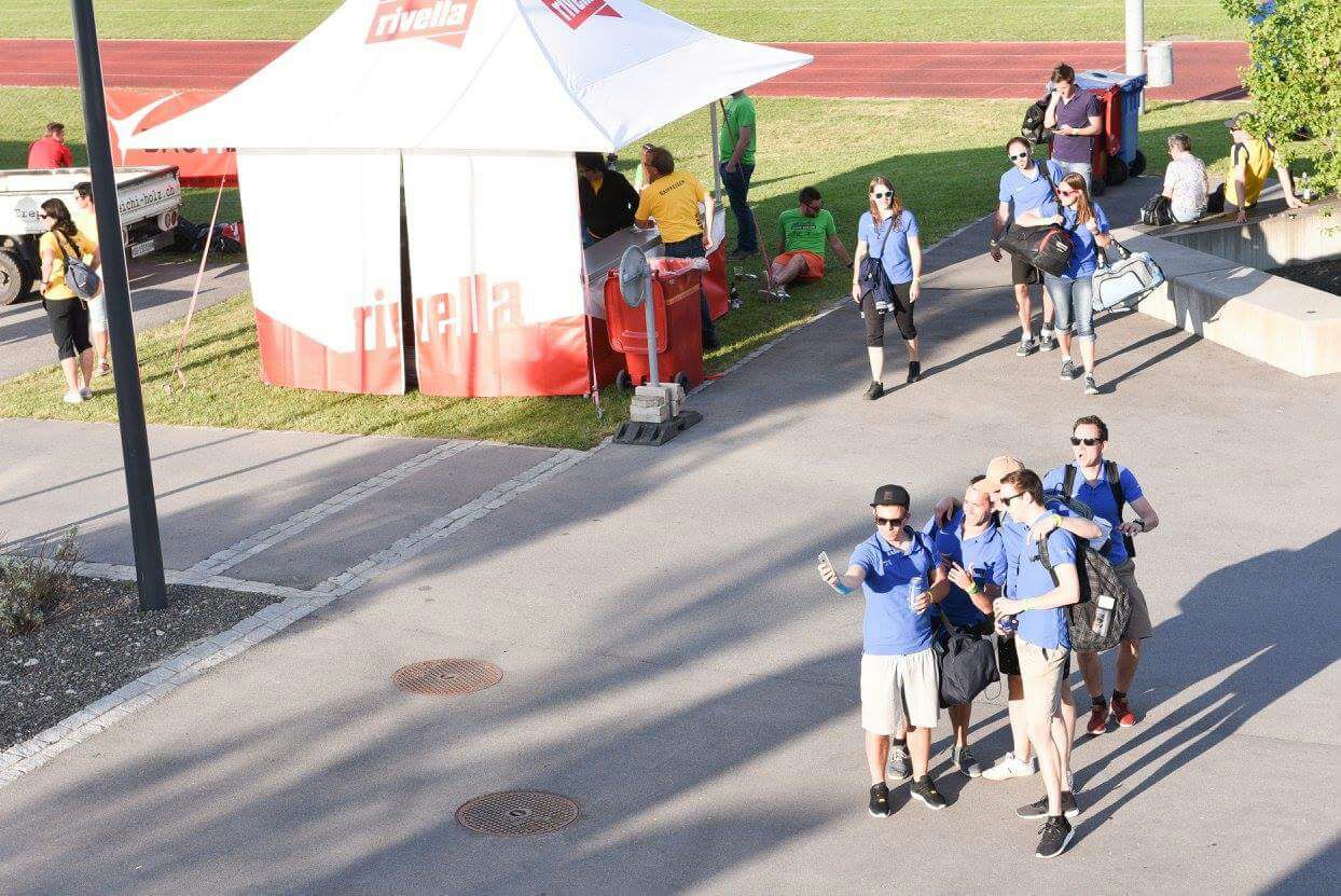 Da unser Auto, mit den Turnfest-Neulingen, bereits bei der Anreise einige Orientierungsprobleme hatte, besuchten wir noch kurz unsere östlichen Nachbarn in Österreich – zum Teil ohne ID oder Pass. Dass die Zöllner ein vollgepacktes Auto mit 5 verwirrten jungen Leuten nicht anhielt, verwunderte uns trotzdem. Belassen wir es bei unserm Glück und vermuten, dass es sich beim Zöllner ebenfalls um einen Turner handeln musste! 🙂 Es lebe die Turner Familie! Dieses Motto wird uns durch das ganze Turnfest begleiten.