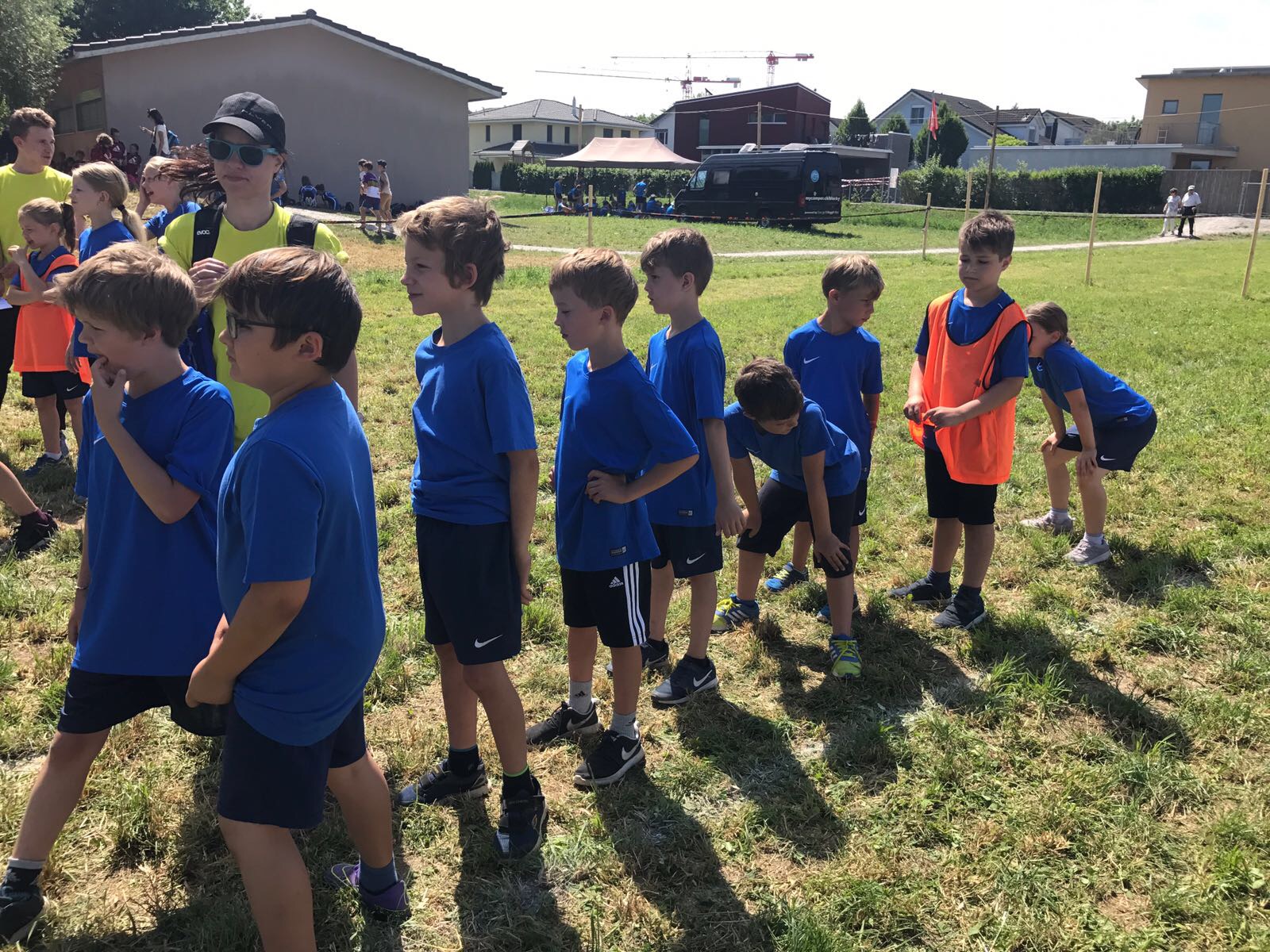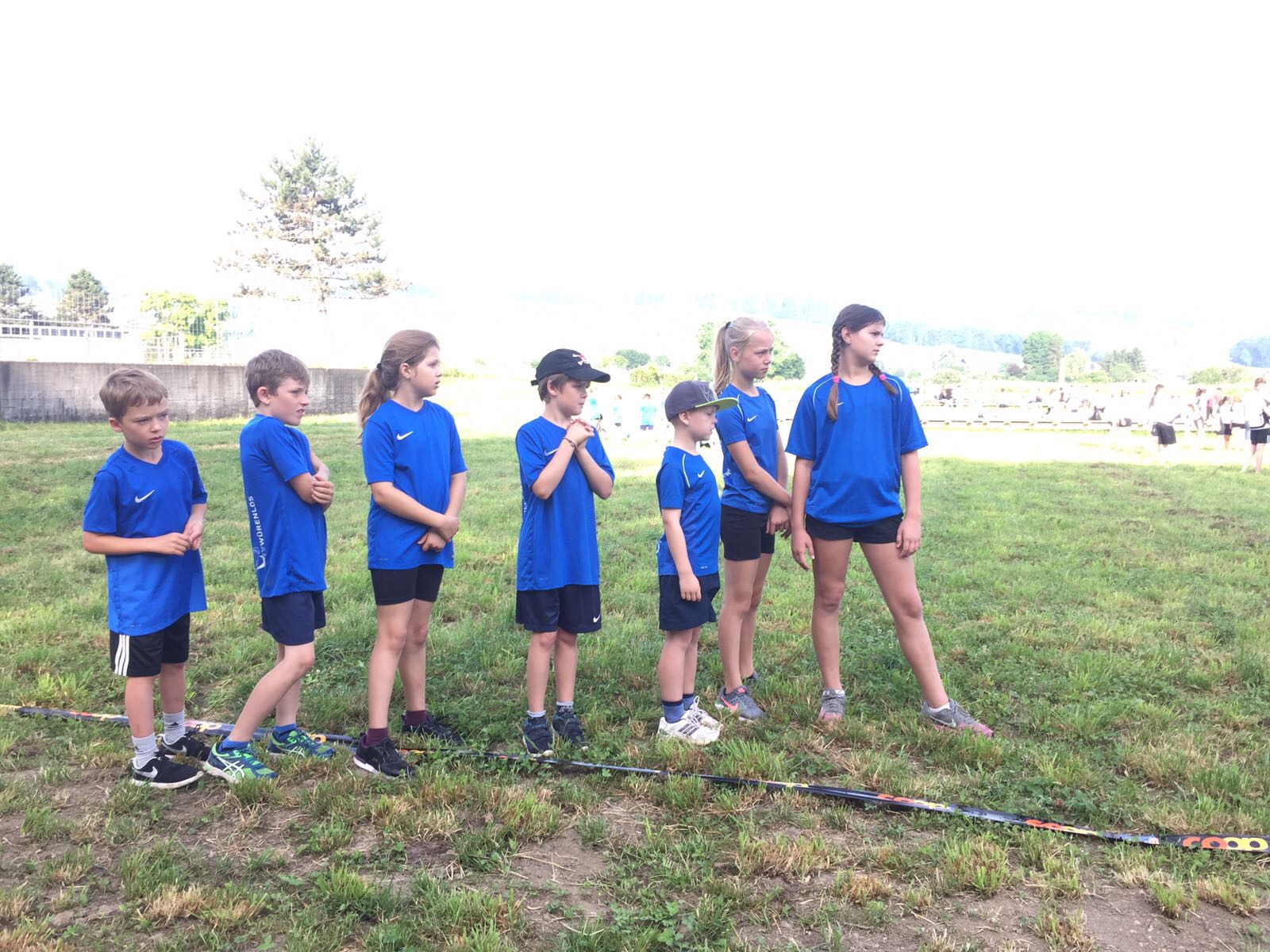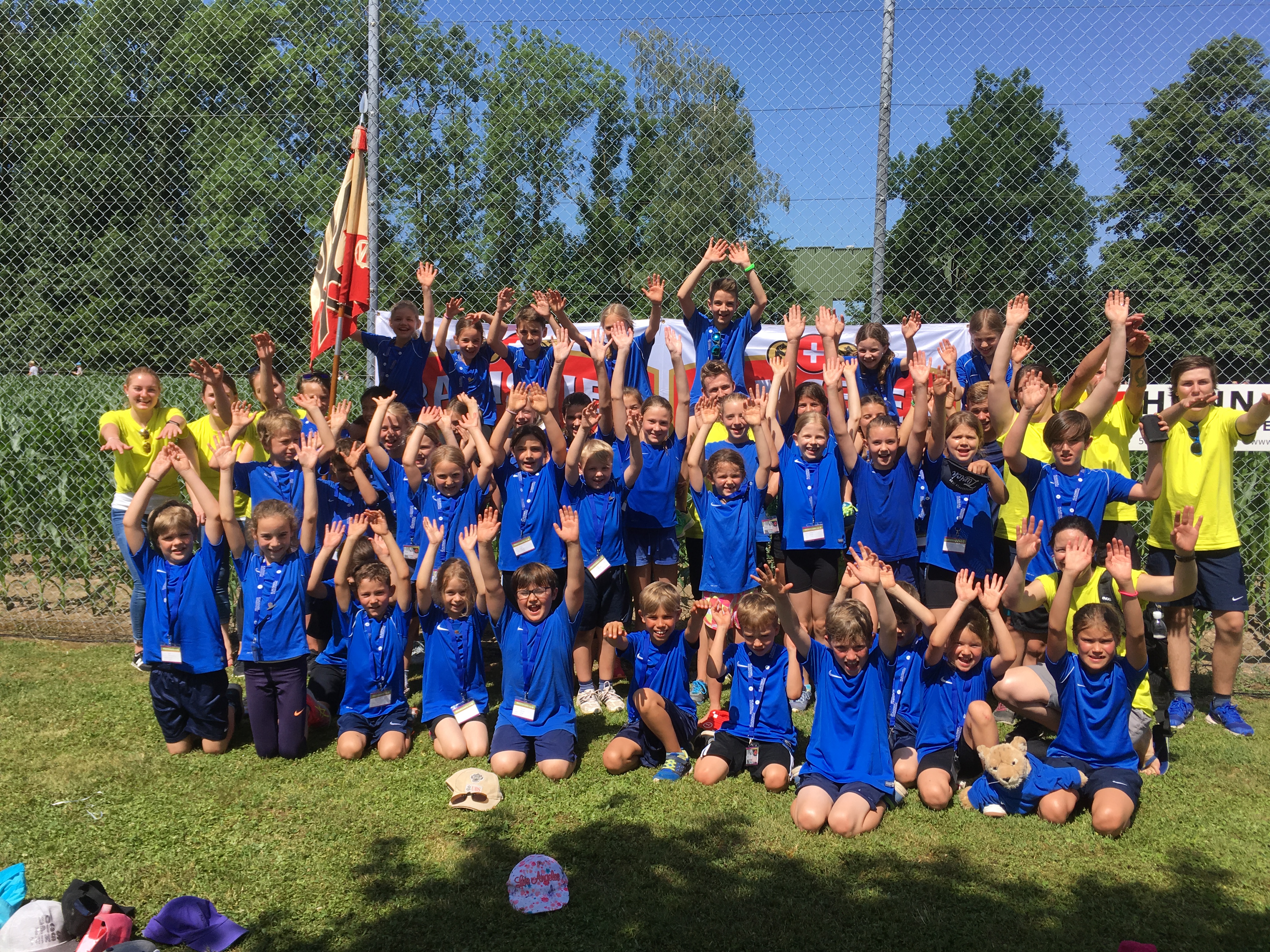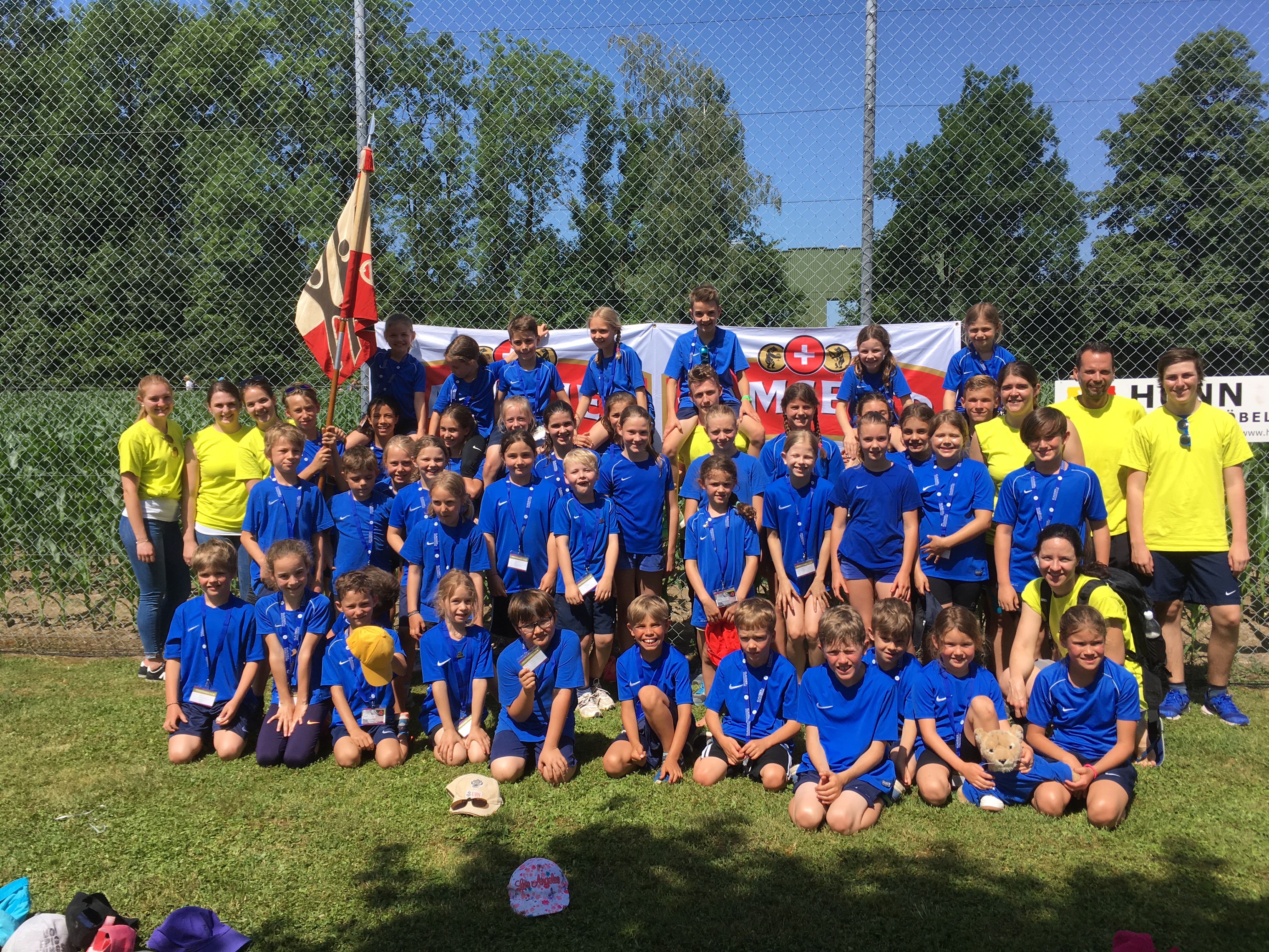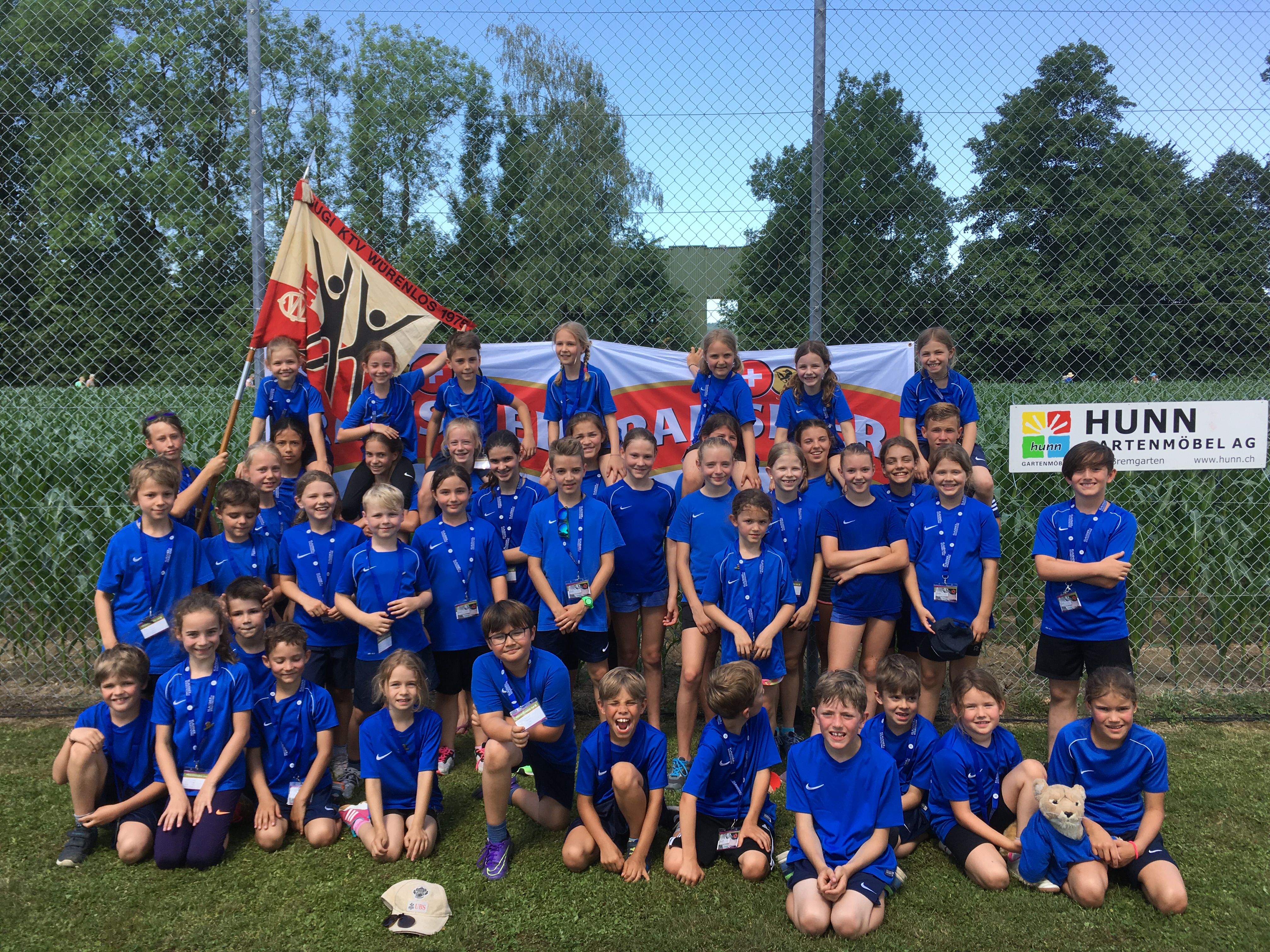 Am Donnerstag 15. Juni trafen sich 43 Kids und acht Leiter und Leiterinnen morgen früh um 05:40 Uhr beim Bahnhof Würenlos, um gemeinsam an das Kantonale Turnfest im Freiamt zu gehen. In diesem Jahr meint es Petrus sehr gut mit uns, schon am morgen früh sind die Sonnenstrahlen anzutreffen. Mit dem Zug ging nach Muri AG. Bereits um 08:18 Uhr starteten wir mit dem 3-teiligen Gruppenwettkampf. Als erstes mussten sich die Kids in den Disziplinen Weitsprung, Ballwurf und Unihockeyparcours messen. Im Unihockeyparcours und Weitsprung waren die Leistungen sehr gut, währenddessen die Kids im Ballwurf nicht immer ganz ihre Topleistungen abrufen konnten. Die Resultate hatten aber keinen Einfluss auf die gute Stimmung. Als nächstes mussten die Mädchen und Jungs den Hindernislauf oder den Spieltest Allround absolvieren. Für viele waren wohl die Hindernisse ein wenig zu hoch und deshalb fiel das Ergebnis eher bescheiden aus, jedoch beim Spieltest konnten wir die beste Note erzielen. Dabei konnten Tim und Noa mit 104 Punkten ein Topresultat erzielen und wurden im Lautsprecher ausgerufen, SUPER! Als letzte Disziplinen standen Geländelauf und Pendelstaffette auf dem Programm. Die Langstrecken-Läufer und -Läuferinnen kämpften bei glühender Hitze sehr gut, auch beim Pendelstaffetten rannten die Kids so schnell wie sie konnten. Nach dem feinen Zmittag und der kühlender Erfrischung machten wir uns für den Freizeitwettkampf bereit. Diese neuen Posten, wie Entli fischen, Büchsen schiessen, Feuerwehrstiefelparcour, Schuhweitwurf, etc, machten unseren Kids mächtig Spass. Um 15:00 Uhr verabschiedeten wir uns von der Hitzen und gingen erschöpft aber glücklich nach Hause. Zum Schluss noch einen herzlichen Dank an alle Leiterinnen und Leiter für die gute Betreuung und natürlich allen Fans für die lautstarke Unterstützung.