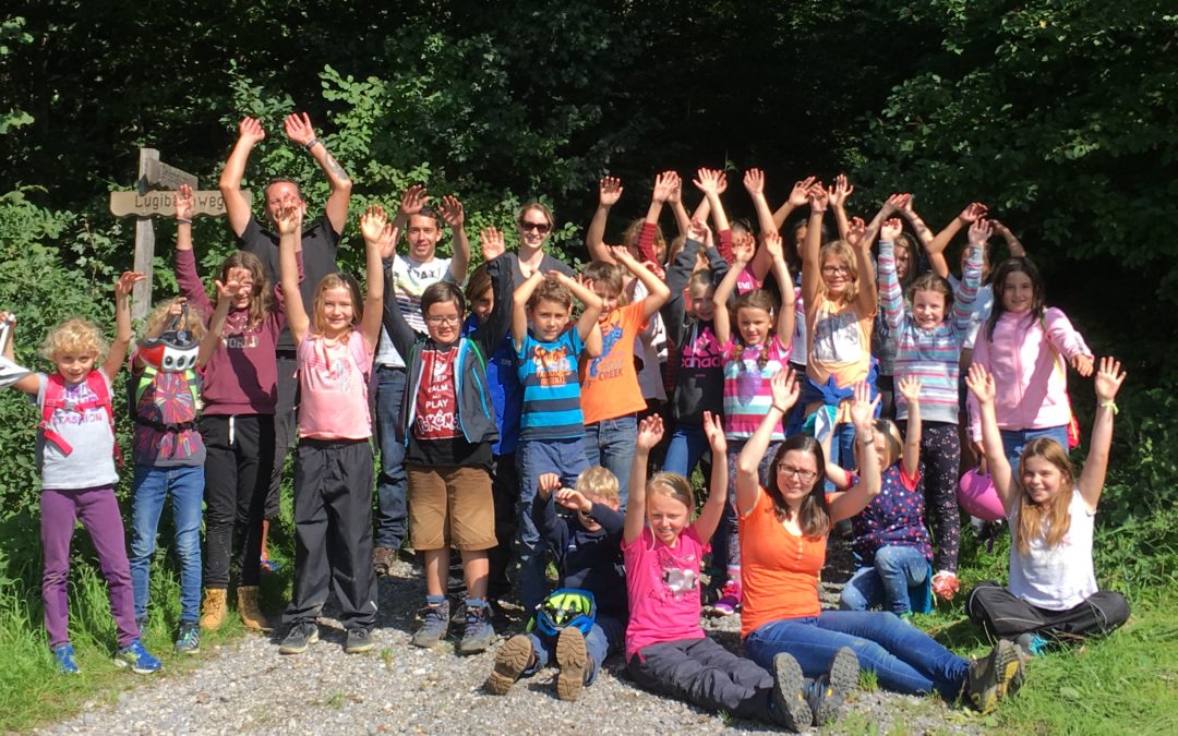Nach einer anstrengenden Fahrt bergauf an den schönen Eigi-Weiher erwartete uns dort ein leckeres Mittagessen. Es gab „Hörnli mit Ghacktem und Öpfelmues“, alles selber gekocht über dem Feuer. Zum Dessert verschlangen die Kinder 5kg Schoggibananen. Das stärkte uns für die anschliessenden Spiele im Wald und auf der sonnigen Wiese. Auch der Weiher lockte einige Kids an, und es blieben nicht alle ganz trocken.