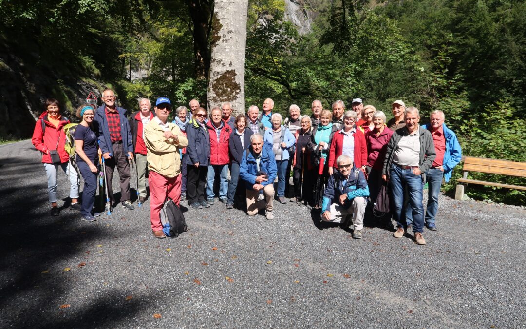 das letztere eher nicht, das erstere aber könnte sehr wohl als Motto der diesjährigen Vereinsreise der beiden Senioren-Riegen dienen. So geriet die 28-köpfige Turnerschar – darunter einige Ehepartnerinnen bzw. Senioren-Turnerinnen – schon nach der Ankunft in Bad Ragaz und dem obligaten Kaffee mit Gipfeli in einen mittleren Wolkenbruch, der allerdings nur kurz dauerte, so dass der Weg nach dem alten Bad Pfäfers weitgehend bei zwar feuchten, aber doch regenfreien Bedingungen zurückgelegt werden konnte. Der Aufstieg im altersgerechten Tempo durch die Furcht einflössende Tamina-Schlucht nahm anderthalb Stunden in Anspruch – die Ankunft beim ehemaligen Badhaus war kurz vor Mittag.