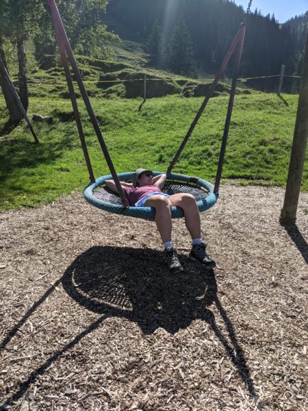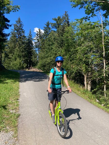 Bevor wir uns ein Glace gönnten, spazierten wir gemütlich um den See. Das Glace musste natürlich auch wieder abtrainiert, um runde Bäuche zu vermeiden. Darum ging es gleich weiter den Berg hinauf zur Sesselliftstation. Nach einer kurzen Verschnaufause packte jede von uns ein Trottinett und in rasantem Tempo fuhren wir zurück ins Tal und mit den öV wieder heimwärts. Alles in allem ein toller und erlebnisreicher Tag. Ein grosses Dankeschön an Anita und Isabelle für die prima Organisation!