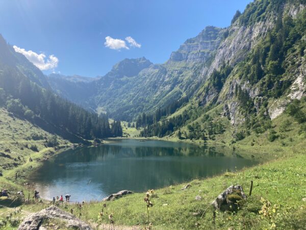 Belohnt wurden wir nach rund 90 Minuten Wanderung von einer tollen Sicht auf den Talalpsee, wo wir auch unser Mittagessen einnahmen. Für die Füsse gab es eine wunderbare Abkühlung im See.